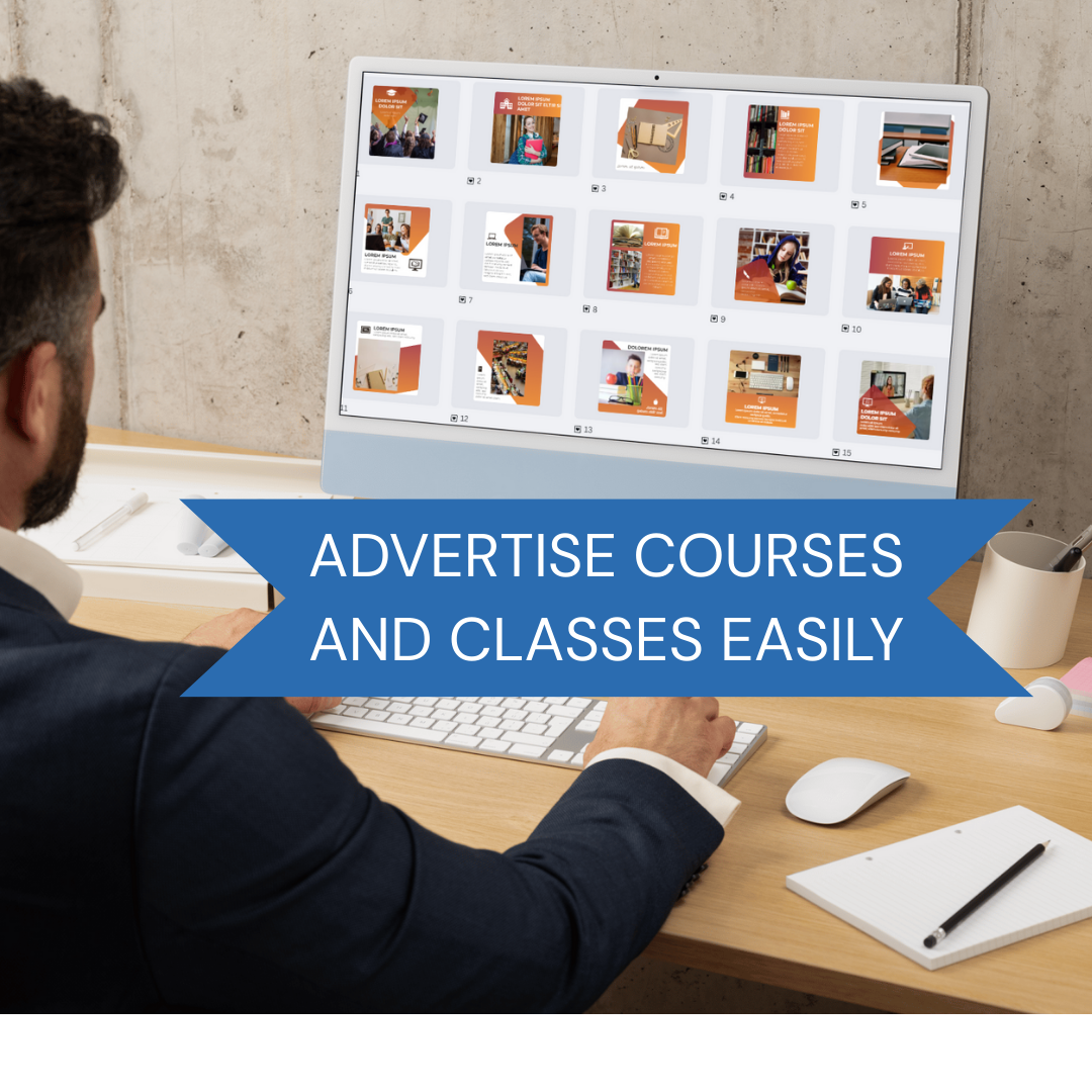 Promote your courses, tutorials, and coaching programs with 50 editable templates designed for the education industry.