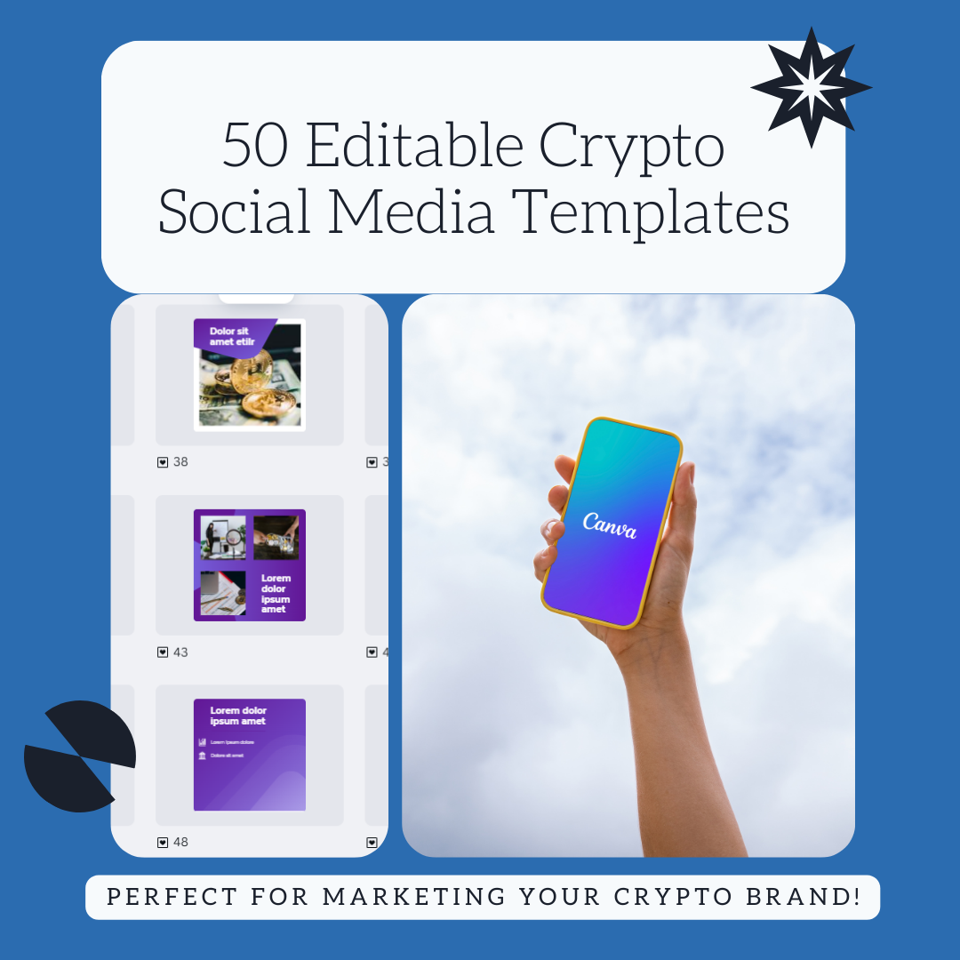 Get 50 ready-to-use crypto marketing templates for social media. Perfect for promoting cryptocurrencies, exchanges, NFTs, and blockchain projects.