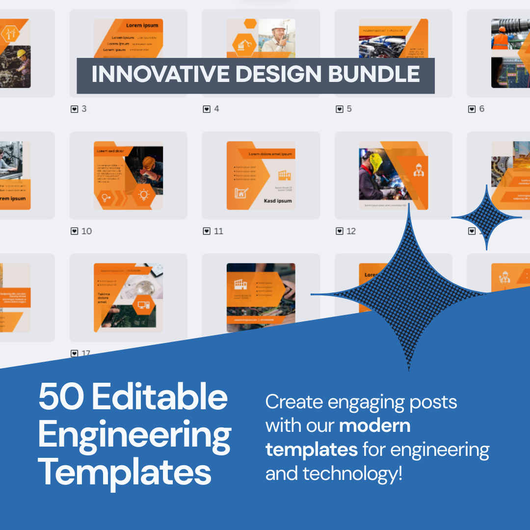 This bundle includes 50 professionally designed social media templates specifically created for engineering businesses, consultants, and STEM educators. Whether you’re in civil, mechanical, electrical, or software engineering, these templates help you maintain a consistent and polished brand on platforms like Instagram, Facebook, and LinkedIn.