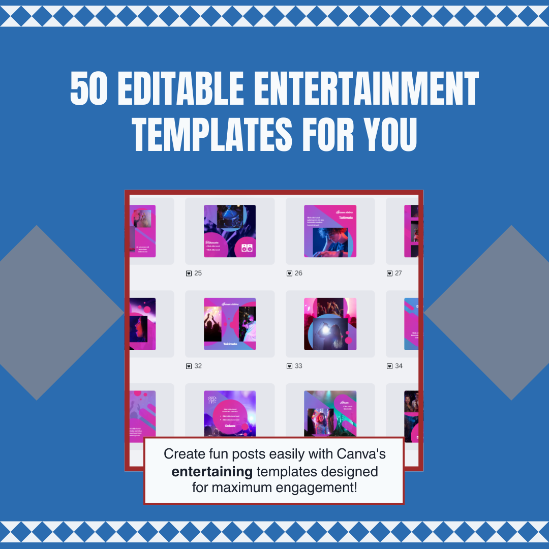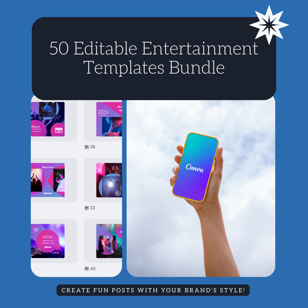 50 editable Canva templates tailored for entertainment brands, artists, event organizers, and content creators