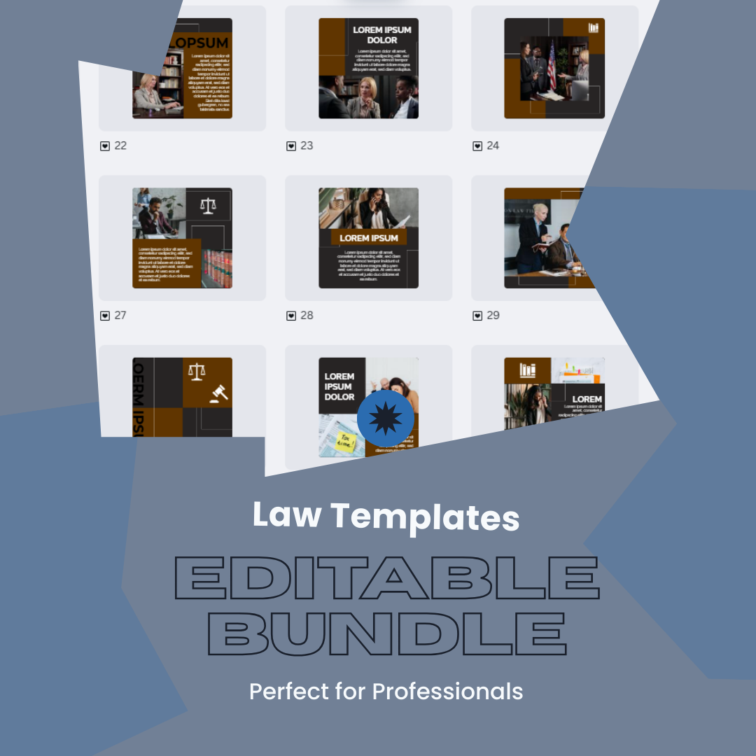Promote your law firm online with 50 editable Canva templates. Perfect for lawyers, legal offices & attorneys. Easy to customize & post-ready.